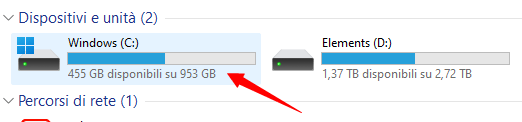 Il più delle volte i rallentamenti sono causati dalla mancanza di spazio sul disco principale dove esegui il sistema operativo, per controllare lo stato basterà cercare l’icona “Questo PC” sul tuo dispositivo, qui vedrai subito lo spazio occupato e disponibile presente, nel caso la barra dovesse riempirsi quasi del tutto, è il caso di fare un po’ di pulizia.