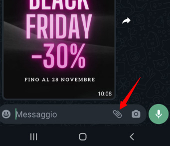 Per quanto concerne l’invio dell’immagine del buongiorno se hai scaricato la stessa dal web, la prima cosa che devi fare consiste nel premere il disegno della graffetta presente nella parte bassa della chat.